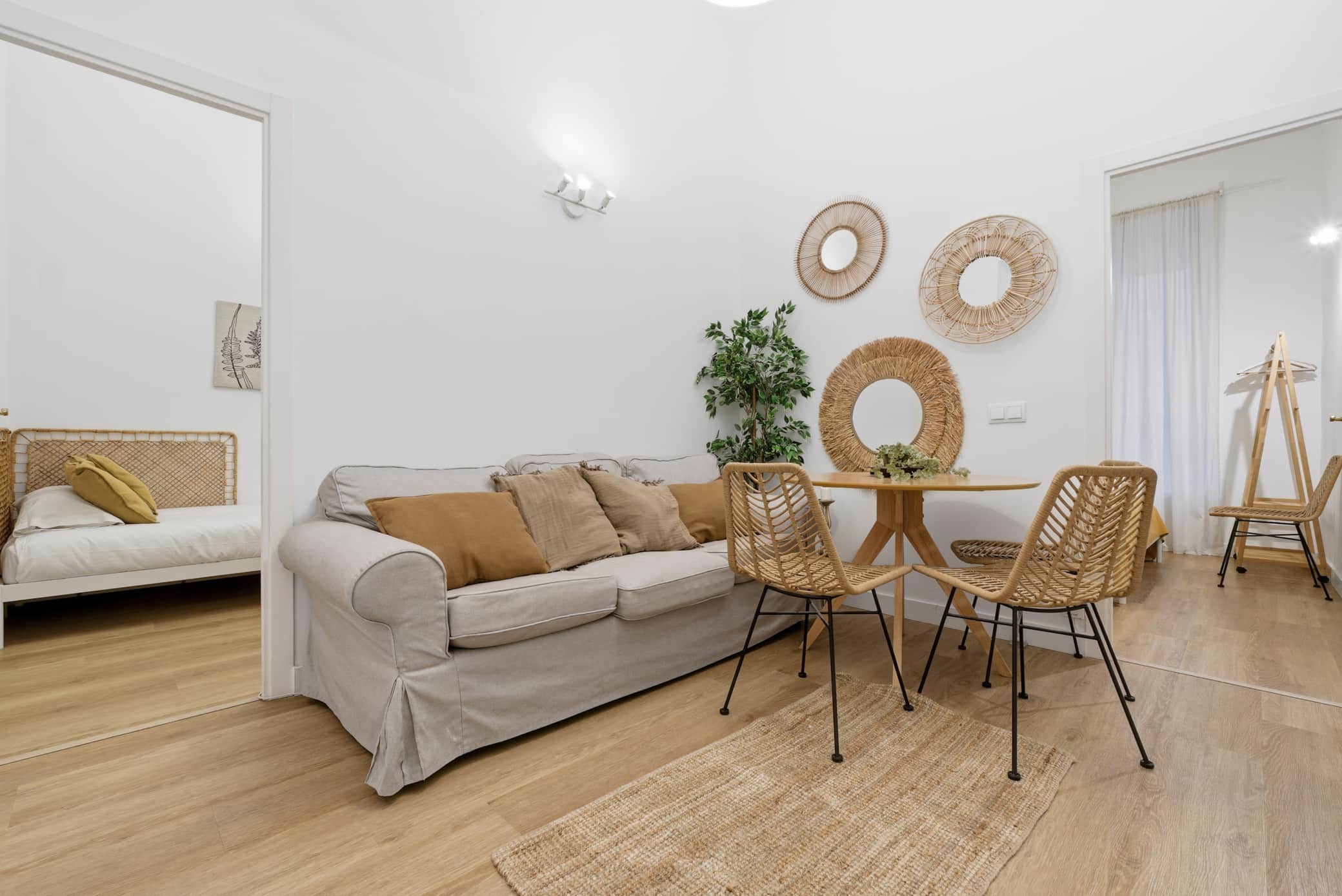 This simple but comfortable apartment offers everything you need for a perfect stay in Madrid. It has three bedrooms (two with double beds and one with a single bed and sofa), two bathrooms, a cosy dining room and a fully equipped separate kitchen. With capacity for up to five people, it is ideal for families and groups of friends.